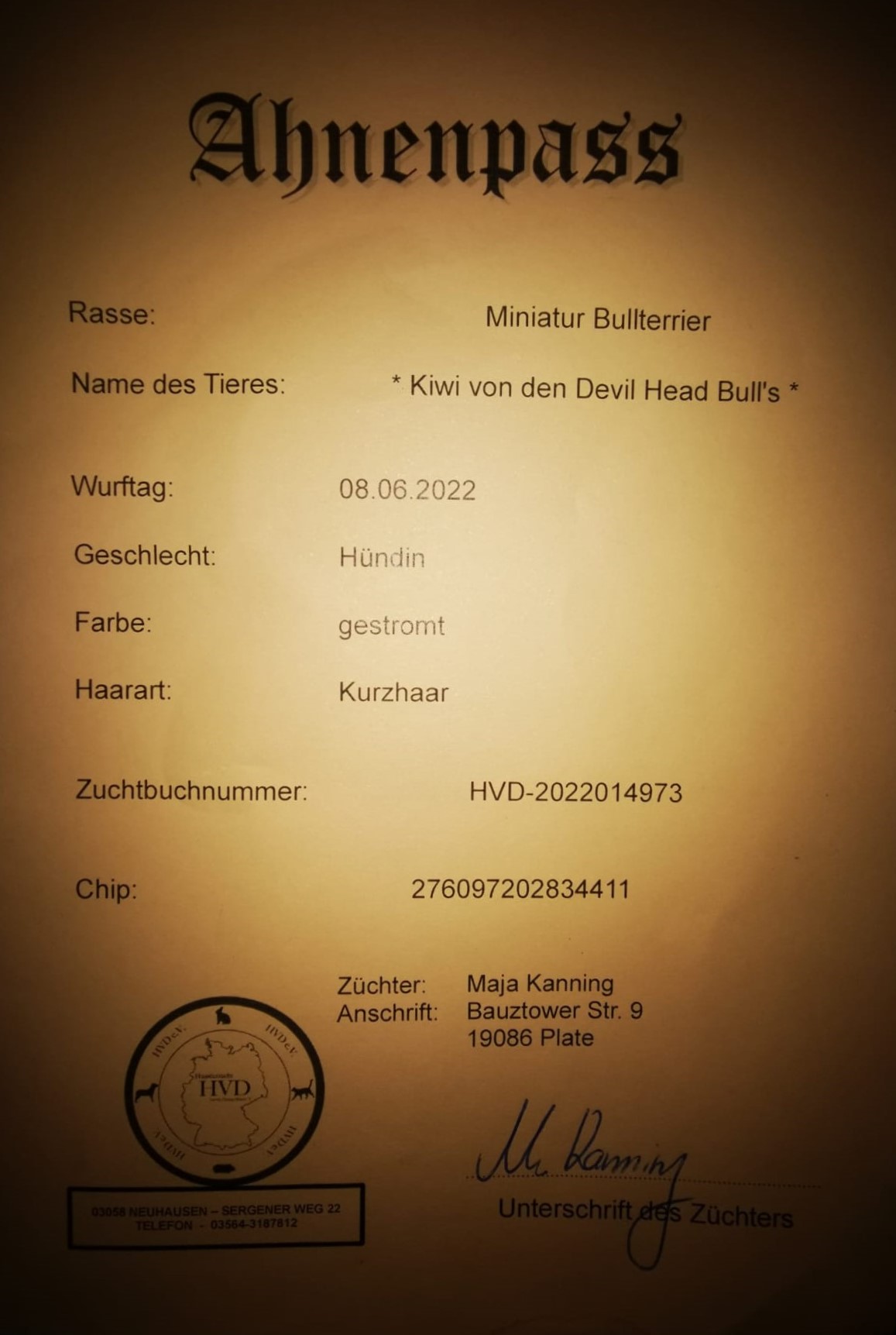 🐾 Name: Kiwi von den Devil Head Bull’s