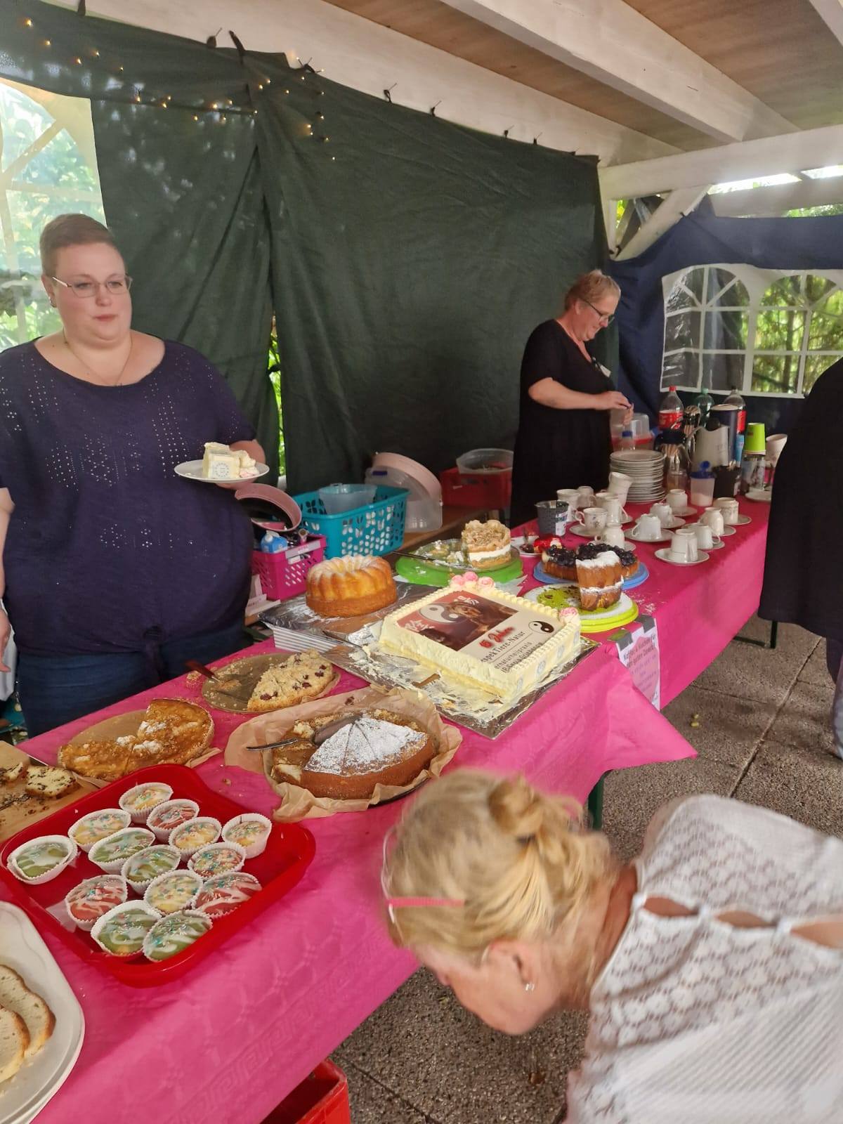 Unsere fleißigen ehrenamtlichen Helfer*innen haben für alles gesorgt, Tische und Bänke, einen Pavillon besorgt und aufgestellt, Geschirr und sonstige Utensilien mitgebracht und vor Ort ein schönes Kuchen - Büfett präsentiert. Es war einfach toll zu sehen, wie viele mit angepackt und geholfen haben, das alles auf die Beine zu stellen.